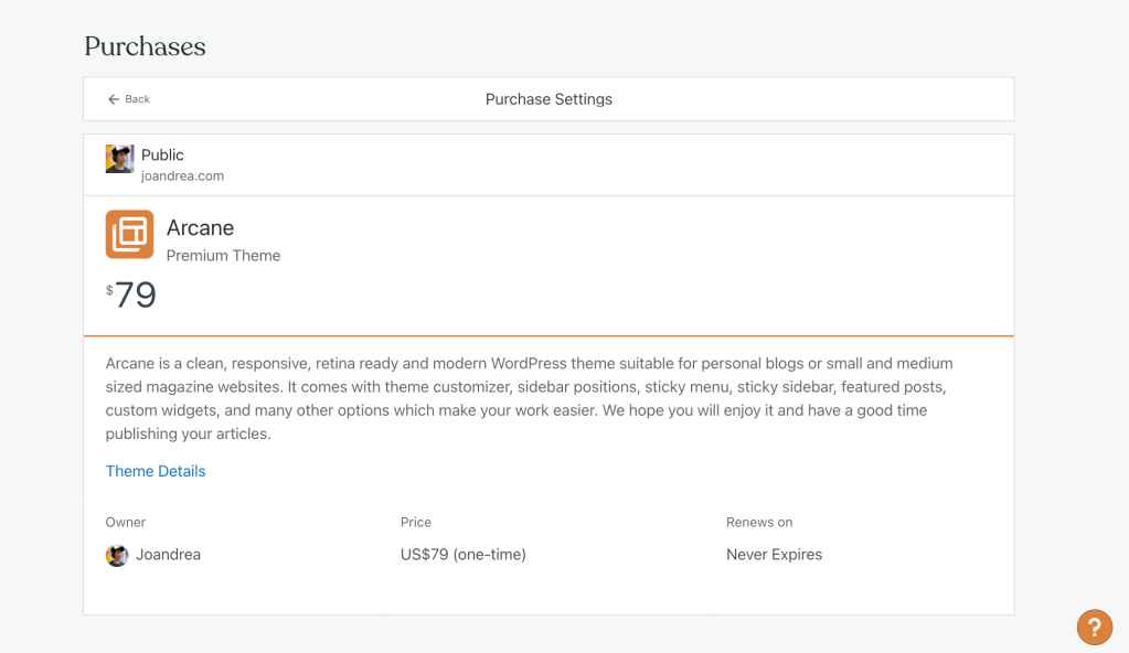 A few years back, I purchased a premium WordPress theme called Arcane thinking I would be able to use it perpetually. It still says in fine print on the bottom right “Never Expires”.